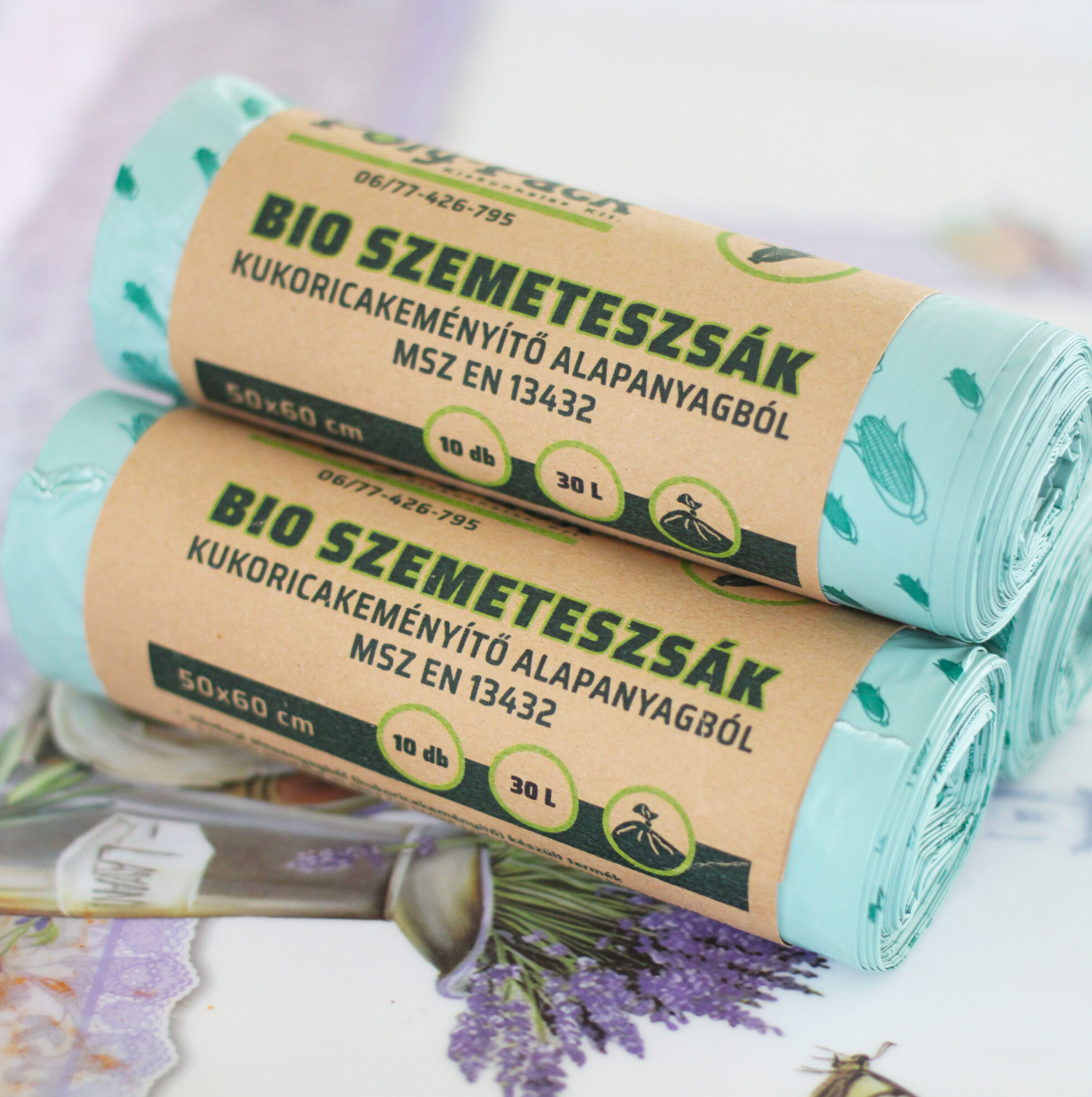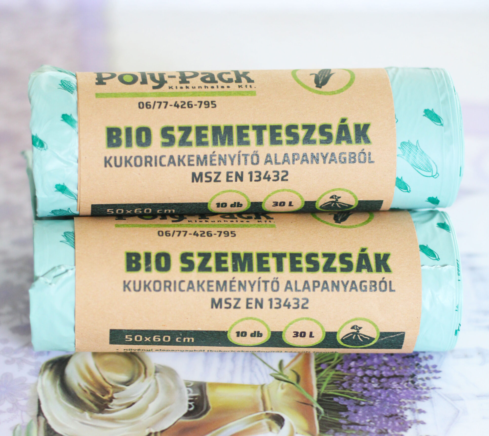 A környezettudatos otthonok kiegészítői az ún. PLA komposztálható szemetes zsákok, melyek műanyagpolimerek helyett kukoricakeményítőből készülnek, és a megfelelő körülmények között 90 nap alatt teljes mértékben lebomlanak.