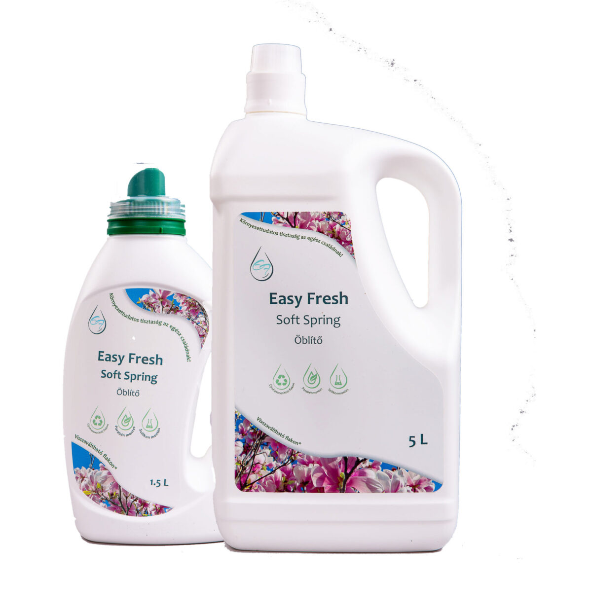 Az Easy Fresh soft spring öblítő egy növényi -és biológiailag lebomló alapanyagokon alapuló környezetbarát alternatíva a hagyományos öblítők helyett.  Alacsony vegyianyag-tartalmú, illetve mikroműanyag-, parabén-, formaldehid-, foszfát-, enzim- és optikai fehérítőmentes termék.