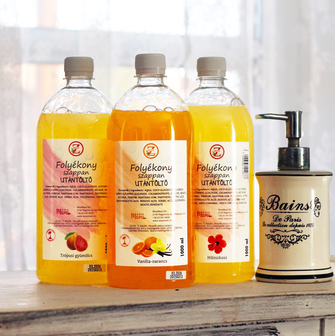 SLS-, pálmavaj- és szulfátmentes folyékony szappan utántöltő kiszerelésben.
