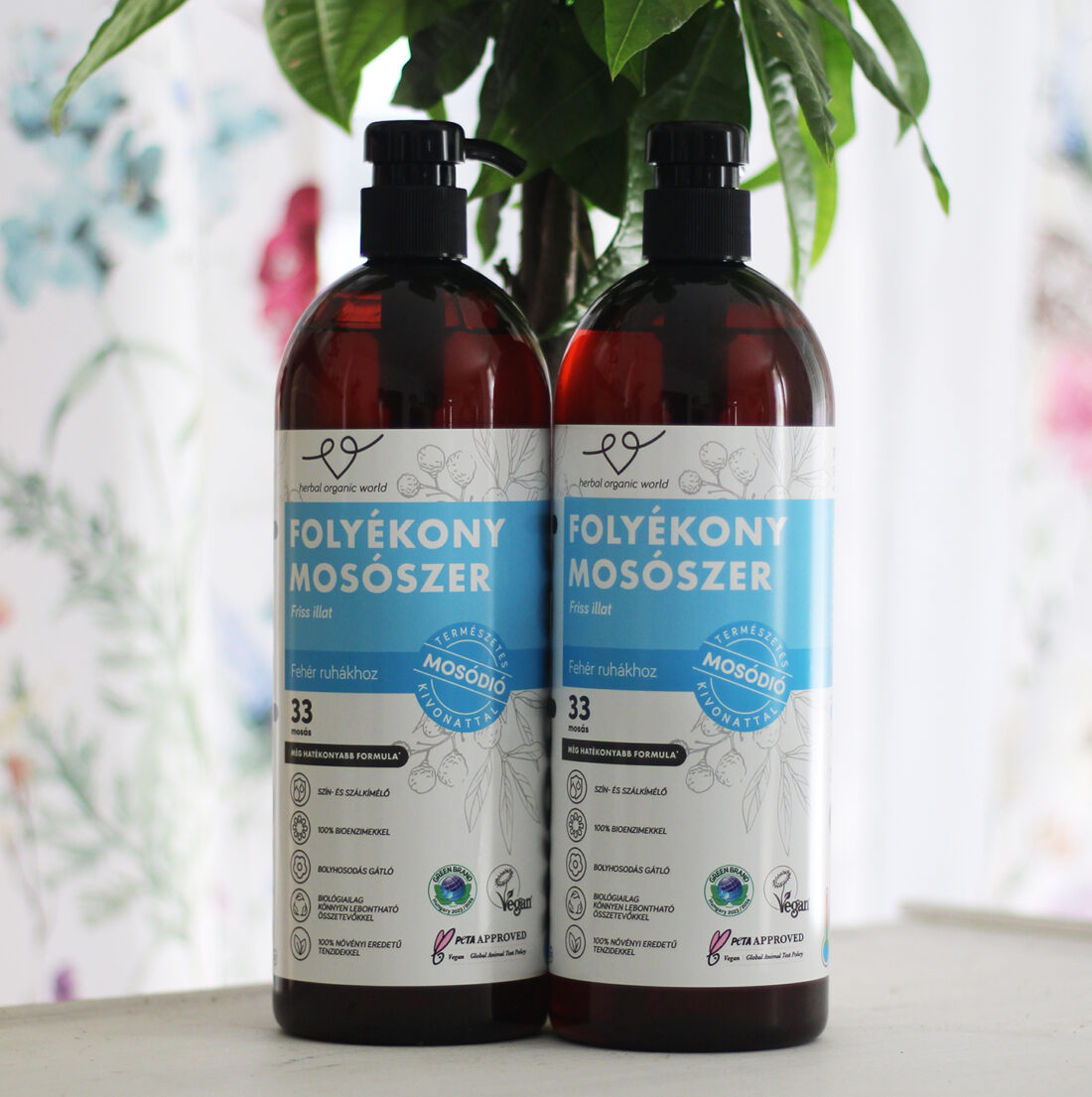 A Herbow friss illatú folyékony mosógél kifejezetten fehér textíliákhoz készült: bioenzimek és kíméletes eljárással kivont mosódió-extraktum segíti hófehérré varázsolni a ruhadarabokat.