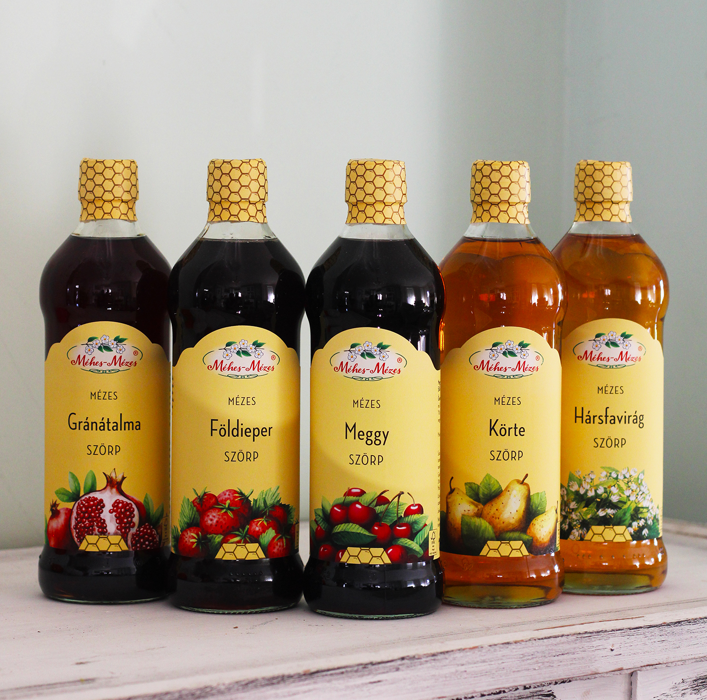 Magyar terlmelői mézes szörp válogatás. Tartósítószer nélkül készűlnek valódi gyümölcsökből. A csomag ideális lehet ajándéknak bármelyien alkalomra.