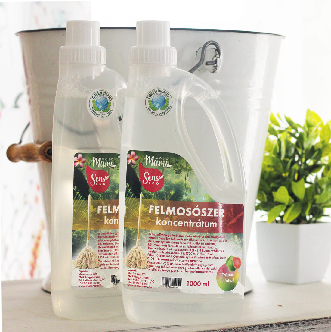 A SensEco felmosószer egy kizárólag fenntartható forrásból származó növényi tenzideket, valamint fertőtlenítő hatású bioalkoholt tartalmazó formula, melynek segítségével vegyszermentes megoldást találsz a járófelületek tisztán tartásához. SLS-, SLES, parabén-, klór-, foszfát-, színezékmentes magyar termék.
